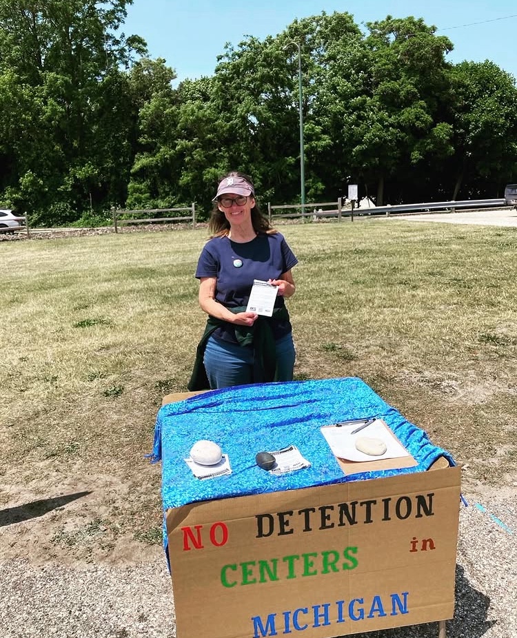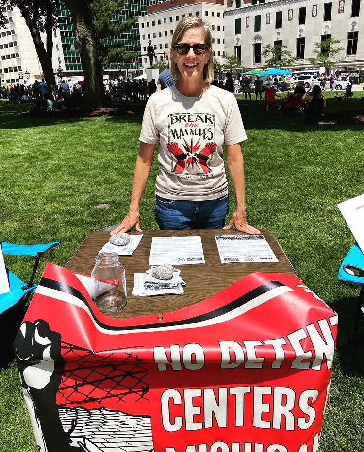 Members of No Detention Centers in Michigan attended #NoKings events on Saturday in Traverse City, Grand Rapids, Lansing, Big Rapids and Ann Arbor to spread the word about the GEO Group’s unacceptable plans to reopen the North Lake Correctional Facility in Baldwin for ICE in the coming days. Our friends in Movimiento Cosecha GR also spoke to the recent escalated ICE terror in Grand Rapids and the need to free Carlos Menjivar, who was kidnapped from his ISAP appointment on June 4th and whose family stayed in sanctuary at Fountain Street Church before leaving the country over the weekend.
