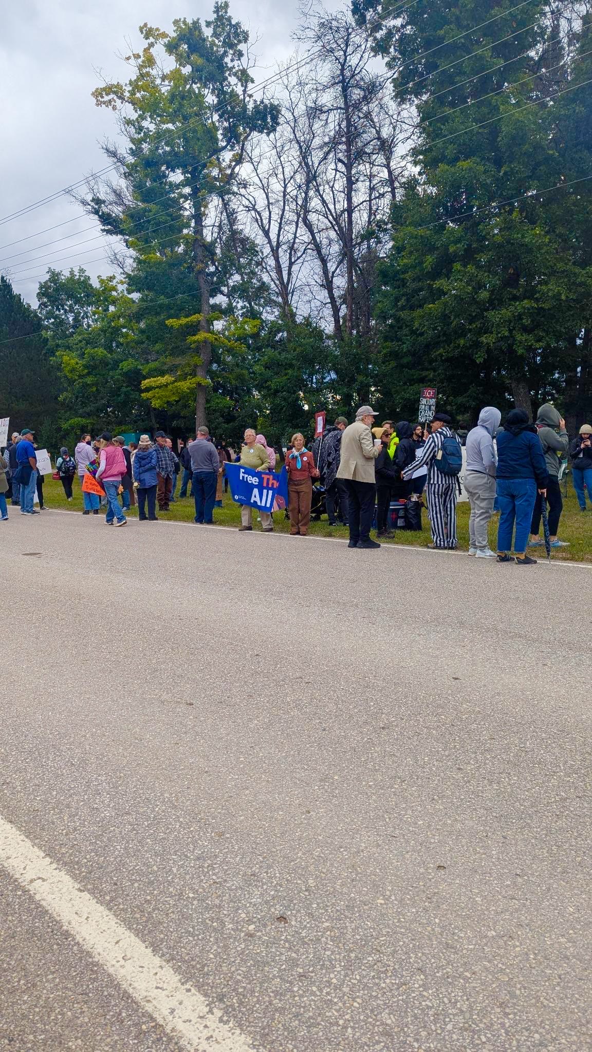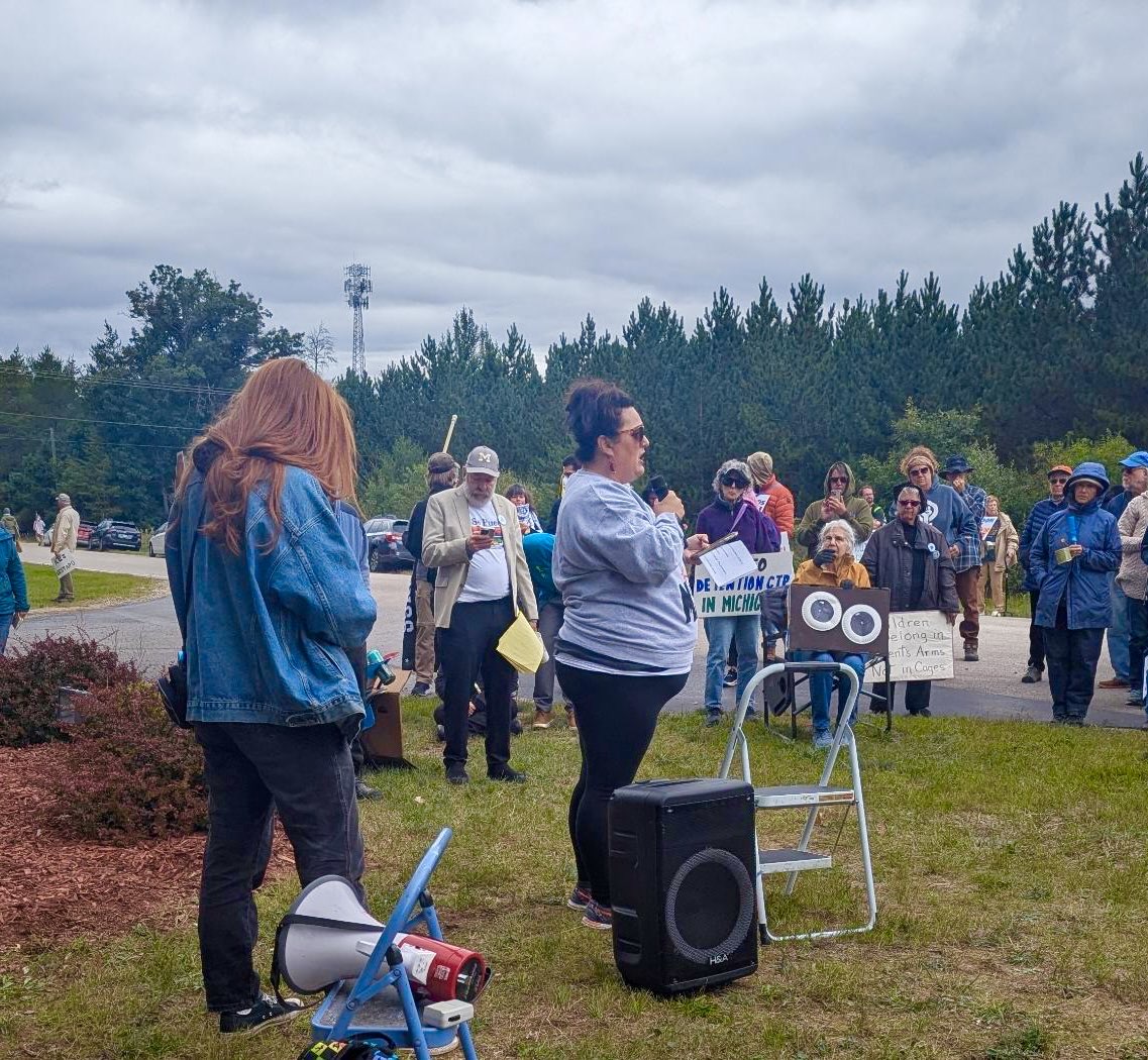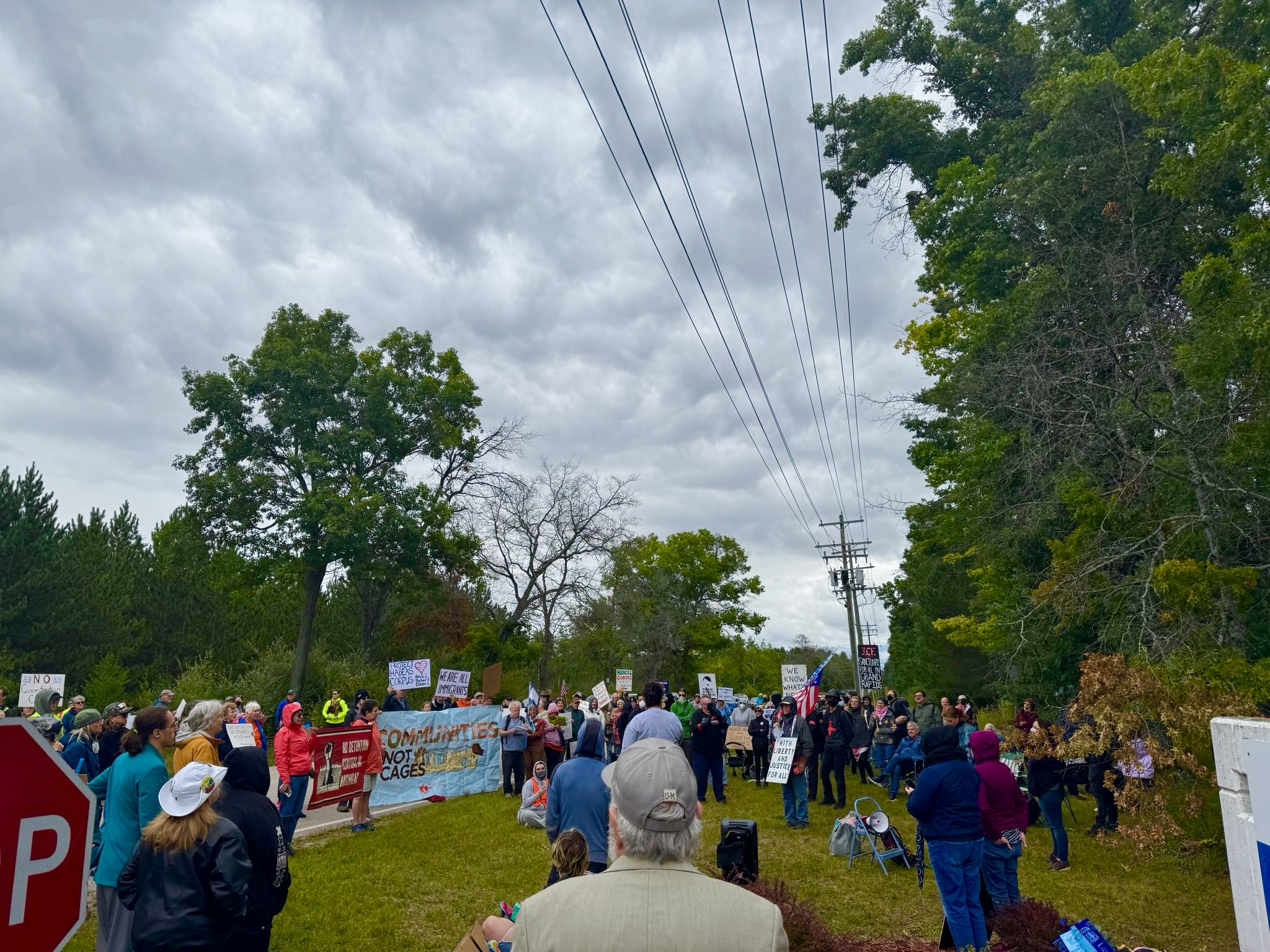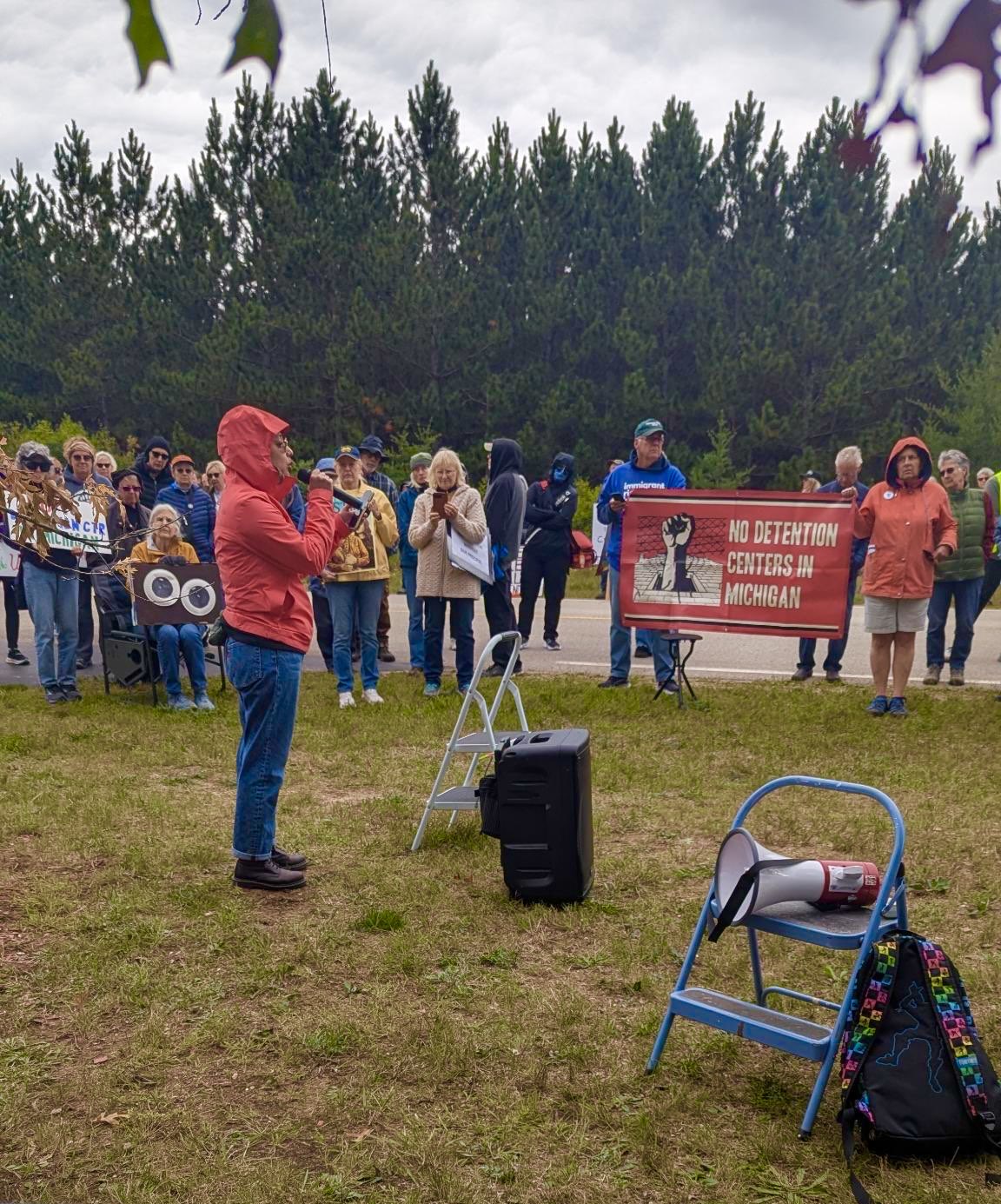 Baldwin, MI — On Saturday, September 6th, for the second time this summer, over 200 members and supporters of No Detention Centers in Michigan, a statewide coalition, gathered outside the North Lake Processing Center in Baldwin, formerly known as the North Lake Correctional Facility. Attendees traveled from across the state and the region to show concern and solidarity with the hundreds of immigrants who are now held in Baldwin for Immigration and Customs Enforcement by the GEO Group, the Florida-based private company that owns the prison. The GEO Group had earlier informed people detained at North Lake that family visits would be cancelled for the day, following the announcement of the demonstration.