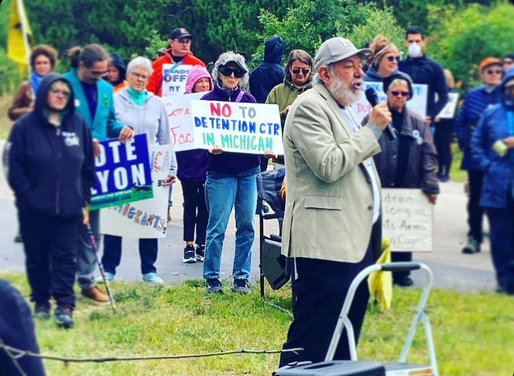“The members and movements of Fountain Street have stood beside you and will continue to stand beside you,” Rev. Nathan Dannison of Fountain Street Church in Grand Rapids told the assembled crowd in a recorded message. “You have allies in the faithful people of Grand Rapids. Any Christian who knows their Bible can tell you, somewhere inside the North Lake facility, a baby is being born into a manger. Somewhere inside the North Lake concentration camp, the soldiers of GEO Group are nailing Jesus Christ to the cross. Your actions today will serve as a testimony to our grandchildren—that we refused. We say, Basta! Enough!”